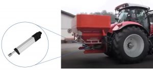 散布機の量の調整に使用されています。屋外で使用されるためリニアアクチュエータには、高い防水性と耐腐食性が求められます。RA60Kは保護クラスIP69Kに適合し高圧洗浄機での清掃が可能です。腐食、軽油、消毒液にも強い設計になっています。駆動電圧は一般的な車載用バッテリーと同じ12Vです。 |